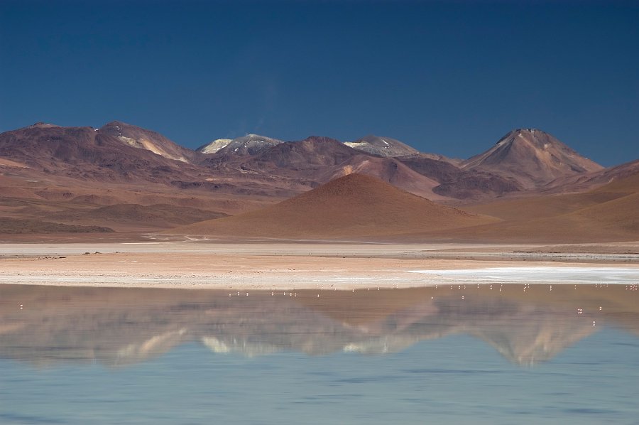 | Ein Salzsee mit typischen Flamingogruppen. | |