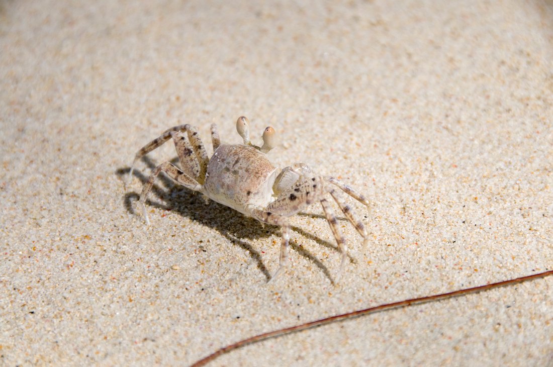 Eine der hellen Sandkrabben die man immer nur davon huschen sieht.